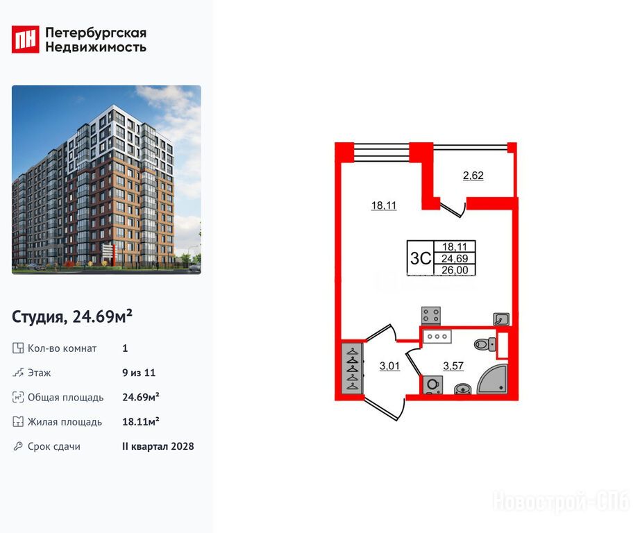 Продается студия в новостройке ЖК «Астра Континенталь» по адресу Санкт-Петербург, Невский, пр-кт Обуховской Обороны / Большой Смоленский пр-кт. Общая площадь квартиры - 24.69 кв. м. Тип проекта, по которому построен дом — Монолитно-каркасный, компания-застройщик — Setl Group (Сэтл Групп). Стоимость квартиры — 11 400 077 руб. Способы оплаты можно уточнить у продавца. Срок сдачи — 2 квартал 2028. Более подробная информация по телефону.