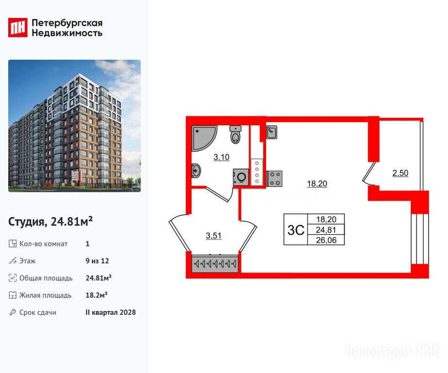 Продается студия в новостройке ЖК «Астра Континенталь» по адресу Санкт-Петербург, Невский, пр-кт Обуховской Обороны / Большой Смоленский пр-кт. Общая площадь квартиры - 24.81 кв. м. Тип проекта, по которому построен дом — Монолитно-каркасный, компания-застройщик — Setl Group (Сэтл Групп). Стоимость квартиры — 10 900 013 руб. Способы оплаты можно уточнить у продавца. Срок сдачи — 2 квартал 2028. Более подробная информация по телефону.