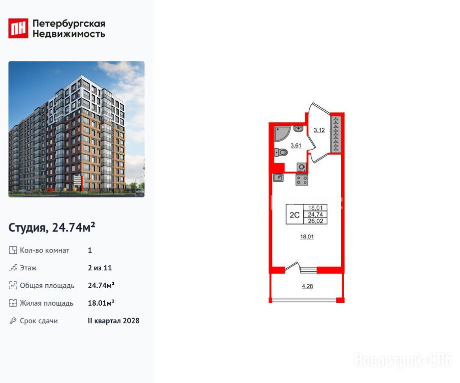 Продается студия в новостройке ЖК «Астра Континенталь» по адресу Санкт-Петербург, Невский, пр-кт Обуховской Обороны / Большой Смоленский пр-кт. Общая площадь квартиры - 24.74 кв. м. Тип проекта, по которому построен дом — Монолитно-каркасный, компания-застройщик — Setl Group (Сэтл Групп). Стоимость квартиры — 10 800 074 руб. Способы оплаты можно уточнить у продавца. Срок сдачи — 2 квартал 2028. Более подробная информация по телефону.