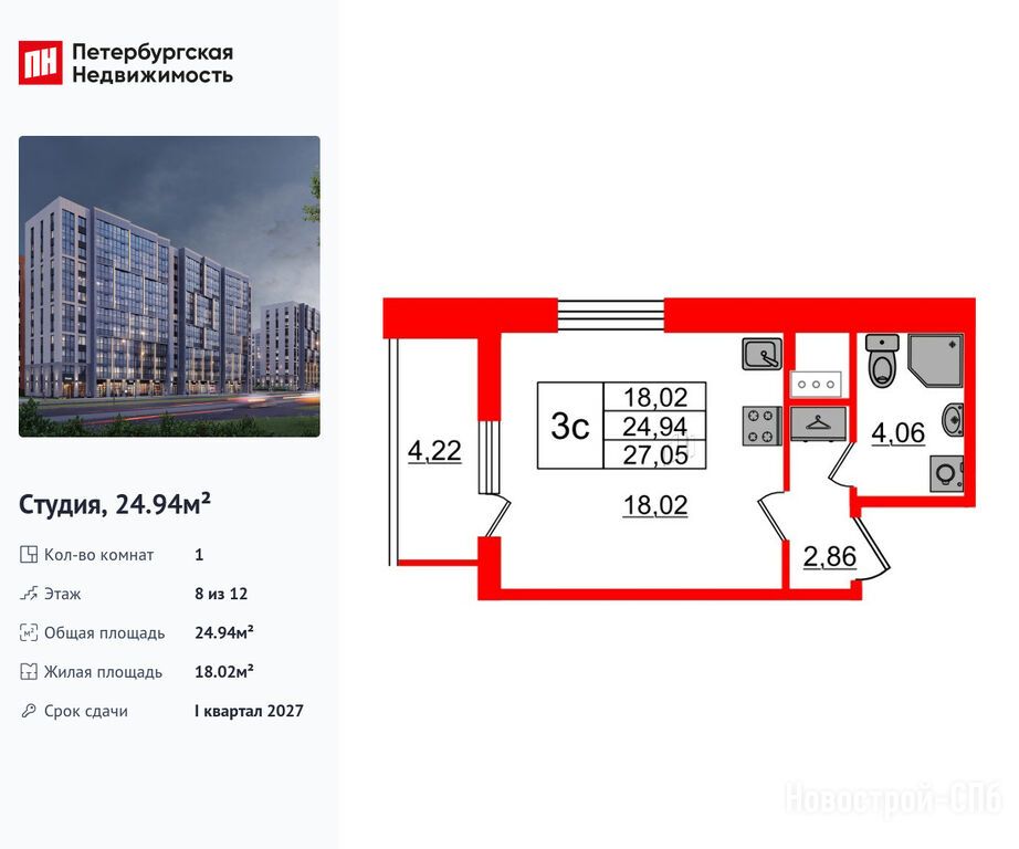 Продается студия в новостройке ЖК «Бионика Заповедная» по адресу Санкт-Петербург, Приморский, Суздальское шоссе, ЖК «Бионика Заповедная». Общая площадь квартиры - 24.94 кв. м. Тип проекта, по которому построен дом — Монолит, компания-застройщик — Setl Group (Сэтл Групп), ООО СЗ СЭТЛ РАЗВИТИЕ. Стоимость квартиры — 7 000 122 руб. Способы оплаты можно уточнить у продавца. Срок сдачи — 1 квартал 2027. Более подробная информация по телефону.