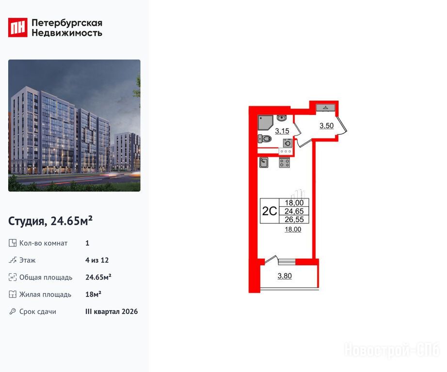 Продается студия в новостройке ЖК «Бионика Заповедная» по адресу Санкт-Петербург, Приморский, Суздальское шоссе, ЖК «Бионика Заповедная», корпус 1.4. Общая площадь квартиры - 24.65 кв. м. Тип проекта, по которому построен дом — Монолит, компания-застройщик — Setl Group (Сэтл Групп), ООО СЗ СЭТЛ РАЗВИТИЕ. Стоимость квартиры — 7 100 153 руб. Способы оплаты можно уточнить у продавца. Срок сдачи — 3 квартал 2026. Более подробная информация по телефону.