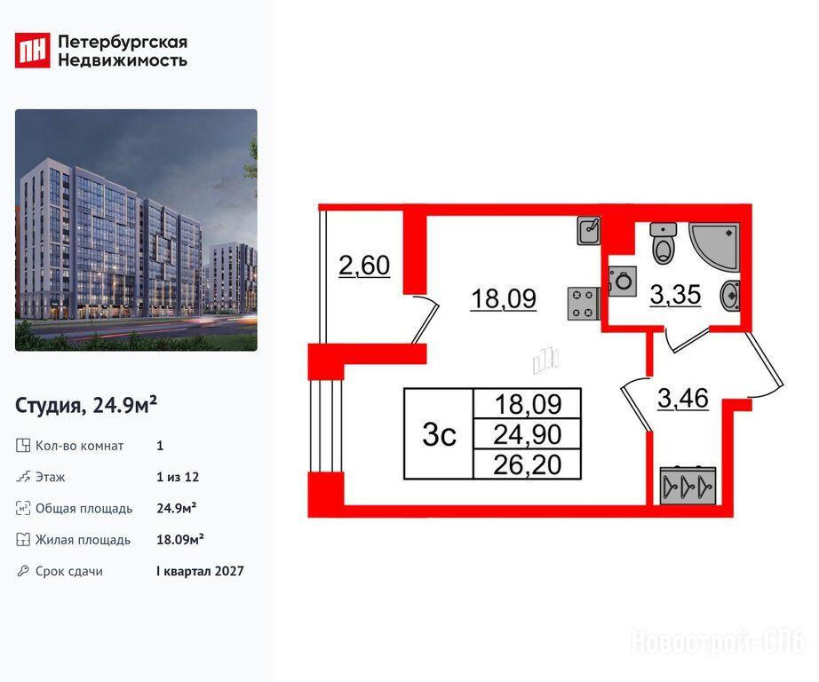 Продается студия в новостройке ЖК «Бионика Заповедная» по адресу Санкт-Петербург, Приморский, Суздальское шоссе, ЖК «Бионика Заповедная». Общая площадь квартиры - 24.9 кв. м. Тип проекта, по которому построен дом — Монолит, компания-застройщик — Setl Group (Сэтл Групп), ООО СЗ СЭТЛ РАЗВИТИЕ. Стоимость квартиры — 6 400 084 руб. Способы оплаты можно уточнить у продавца. Срок сдачи — 1 квартал 2027. Более подробная информация по телефону.