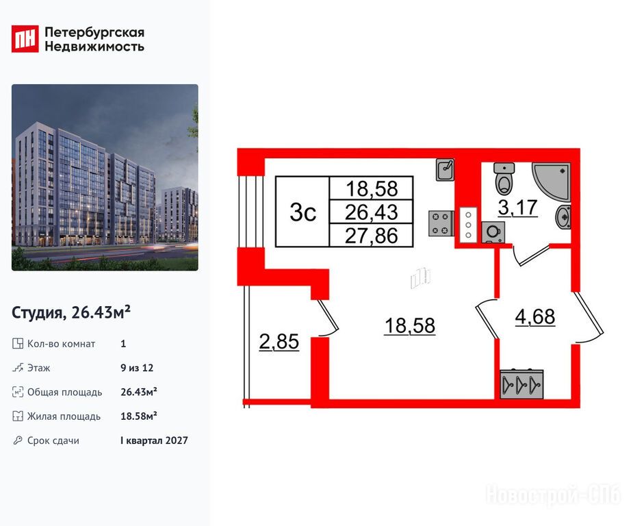 Продается студия в новостройке ЖК «Бионика Заповедная» по адресу Санкт-Петербург, Приморский, Орлово-Денисовский проспект, 20к2. Общая площадь квартиры - 26.43 кв. м. Тип проекта, по которому построен дом — Монолит, компания-застройщик — Setl Group (Сэтл Групп), ООО СЗ СЭТЛ РАЗВИТИЕ. Стоимость квартиры — 7 450 009 руб. Способы оплаты можно уточнить у продавца. Срок сдачи — 1 квартал 2027. Более подробная информация по телефону.
