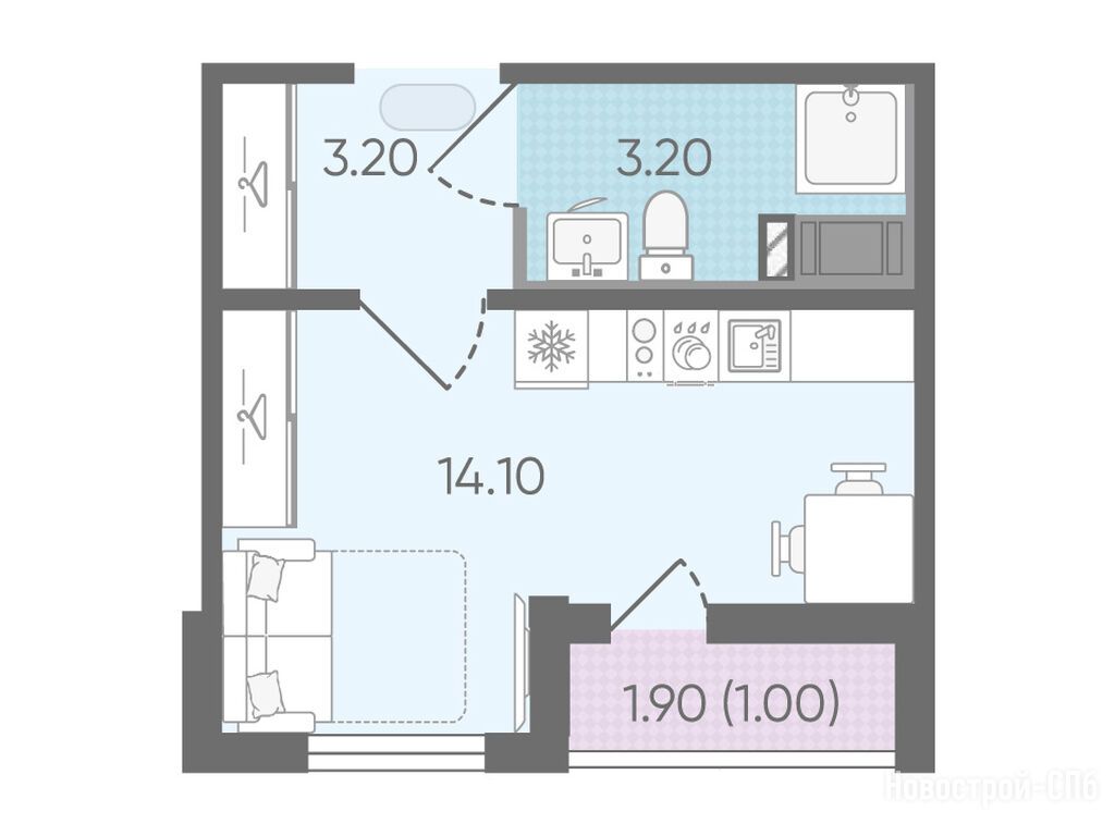 студия, 21.30 м2, 21 этаж