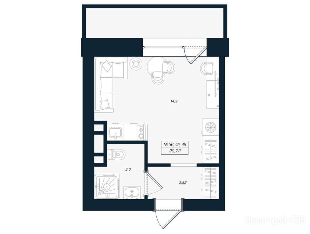 студия, 21.96 м2, 2 этаж