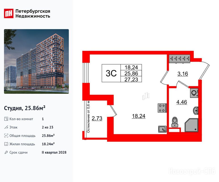 Продается студия в новостройке ЖК «Город звёзд» по адресу Ленинградская область, Всеволожский район, Поселок им. Свердлова, Новосаратовка дер., ул. Рабочая (корп.10). Общая площадь квартиры - 25.86 кв. м. Тип проекта, по которому построен дом — Монолитно-кирпичный, компания-застройщик — Setl Group (Сэтл Групп). Стоимость квартиры — 4 600 184 руб. Способы оплаты можно уточнить у продавца. Срок сдачи — 2 квартал 2028. Более подробная информация по телефону.