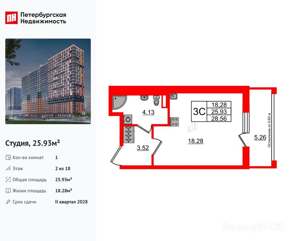 Продается студия в новостройке ЖК «Город звёзд» по адресу Ленинградская область, Всеволожский район, Поселок им. Свердлова, Новосаратовка дер., ул. Рабочая (корп.10). Общая площадь квартиры - 25.93 кв. м. Тип проекта, по которому построен дом — Монолитно-кирпичный, компания-застройщик — Setl Group (Сэтл Групп). Стоимость квартиры — 4 600 073 руб. Способы оплаты можно уточнить у продавца. Срок сдачи — 2 квартал 2028. Более подробная информация по телефону.