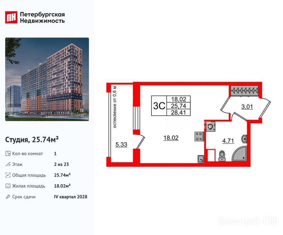 Продается студия в новостройке ЖК «Город звёзд» по адресу Ленинградская область, Всеволожский район, Поселок им. Свердлова, Новосаратовка дер., ЖК «Город звезд», корпус 11. Общая площадь квартиры - 25.74 кв. м. Тип проекта, по которому построен дом — Монолитно-кирпичный, компания-застройщик — Setl Group (Сэтл Групп). Стоимость квартиры — 4 700 200 руб. Способы оплаты можно уточнить у продавца. Срок сдачи — 4 квартал 2028. Более подробная информация по телефону.