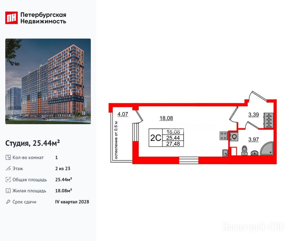 Продается студия в новостройке ЖК «Город звёзд» по адресу Ленинградская область, Всеволожский район, Поселок им. Свердлова, Новосаратовка дер., ЖК «Город звезд», корпус 11. Общая площадь квартиры - 25.44 кв. м. Тип проекта, по которому построен дом — Монолитно-кирпичный, компания-застройщик — Setl Group (Сэтл Групп). Стоимость квартиры — 4 700 149 руб. Способы оплаты можно уточнить у продавца. Срок сдачи — 4 квартал 2028. Более подробная информация по телефону.