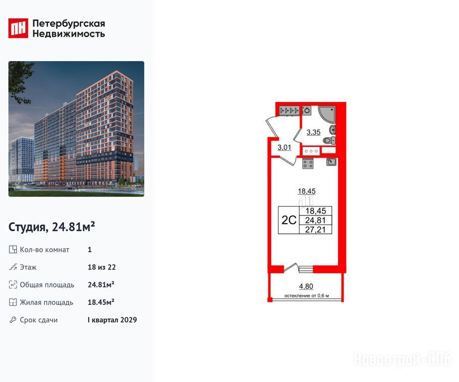 Продается студия в новостройке ЖК «Город звёзд» по адресу Ленинградская область, Всеволожский район, Поселок им. Свердлова, Новосаратовка дер., ул. Рабочая. Общая площадь квартиры - 24.81 кв. м. Тип проекта, по которому построен дом — Монолитно-кирпичный, компания-застройщик — Setl Group (Сэтл Групп). Стоимость квартиры — 4 150 006 руб. Способы оплаты можно уточнить у продавца. Срок сдачи — 1 квартал 2029. Более подробная информация по телефону.