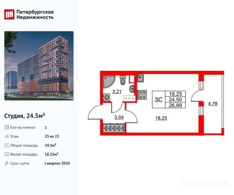 Продается студия в новостройке ЖК «Город звёзд» по адресу Ленинградская область, Всеволожский район, Поселок им. Свердлова, Новосаратовка дер., ЖК «Город звезд», корпус 14.2. Общая площадь квартиры - 24.5 кв. м. Тип проекта, по которому построен дом — Монолитно-кирпичный, компания-застройщик — Setl Group (Сэтл Групп). Стоимость квартиры — 4 450 094 руб. Способы оплаты можно уточнить у продавца. Срок сдачи — 4 квартал 2029. Более подробная информация по телефону.