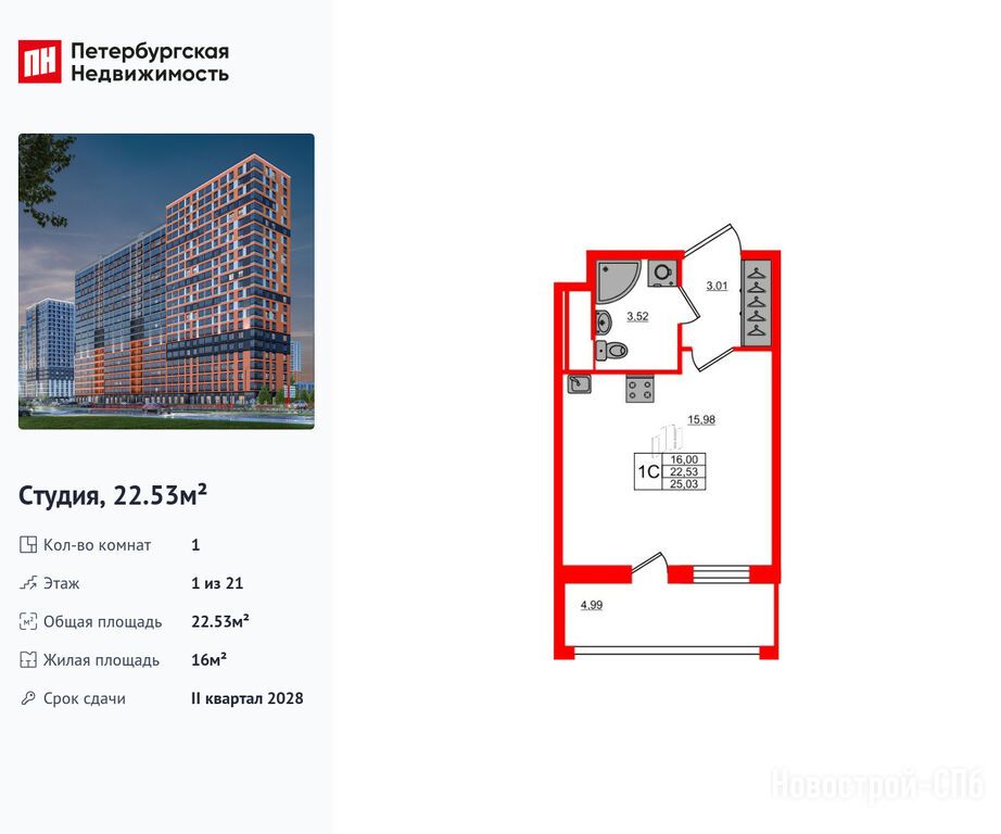 Продается студия в новостройке ЖК «Город звёзд» по адресу Ленинградская область, Всеволожский район, Поселок им. Свердлова, Новосаратовка дер., ЖК «Город звезд», корпус 13. Общая площадь квартиры - 22.53 кв. м. Тип проекта, по которому построен дом — Монолитно-кирпичный, компания-застройщик — Setl Group (Сэтл Групп). Стоимость квартиры — 4 500 176 руб. Способы оплаты можно уточнить у продавца. Срок сдачи — 3 квартал 2029. Более подробная информация по телефону.