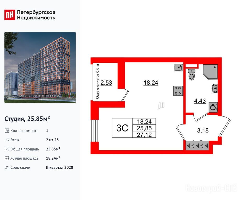 Продается студия в новостройке ЖК «Город звёзд» по адресу Ленинградская область, Всеволожский район, Поселок им. Свердлова, Новосаратовка дер., ул. Рабочая (корп.10). Общая площадь квартиры - 25.85 кв. м. Тип проекта, по которому построен дом — Монолитно-кирпичный, компания-застройщик — Setl Group (Сэтл Групп). Стоимость квартиры — 4 600 163 руб. Способы оплаты можно уточнить у продавца. Срок сдачи — 2 квартал 2028. Более подробная информация по телефону.