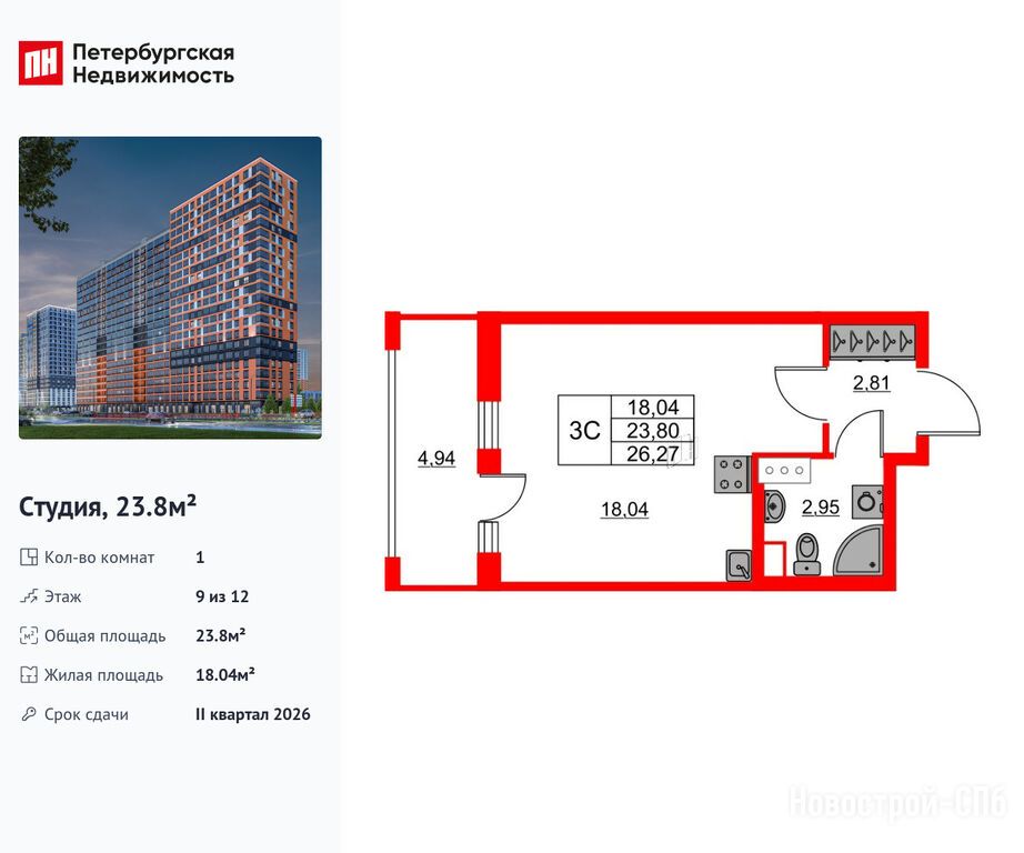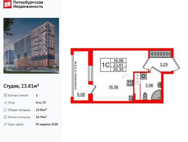 Продается студия в новостройке ЖК «Город звёзд» по адресу Ленинградская область, Всеволожский район, Поселок им. Свердлова, Новосаратовка дер., ЖК «Город звезд», корпус 4. Общая площадь квартиры - 23.8 кв. м. Тип проекта, по которому построен дом — Монолитно-кирпичный, компания-застройщик — Setl Group (Сэтл Групп). Стоимость квартиры — 4 450 034 руб. Способы оплаты можно уточнить у продавца. Срок сдачи — 2 квартал 2026. Более подробная информация по телефону.