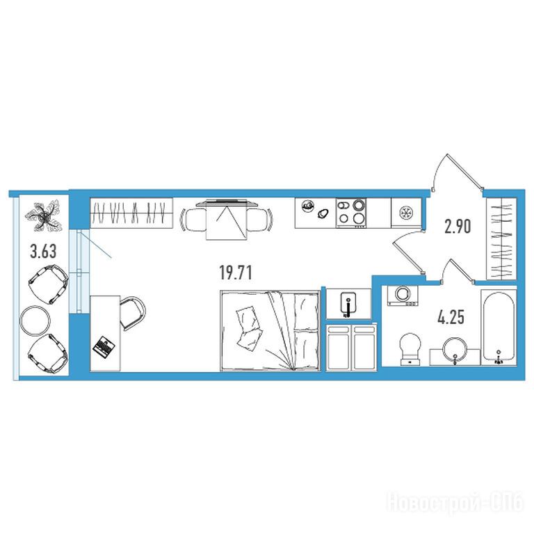 студия, 27.95 м2, 5 этаж