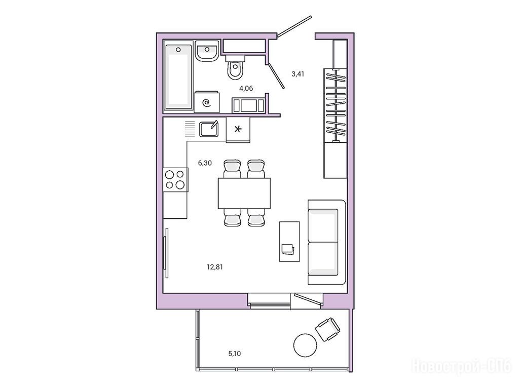 студия, 28.10 м2, 4 этаж