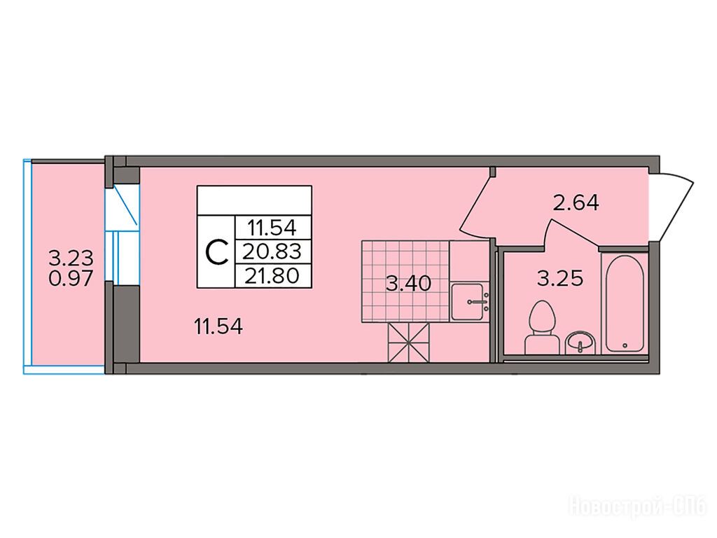 студия 21,80 м2 5 384 600
