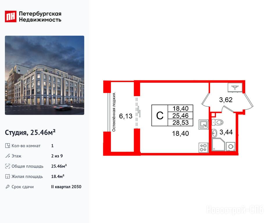 Продается студия в новостройке ЖК «Кристалл Холл» по адресу Санкт-Петербург, Адмиралтейский, Рижский проспект, 26Б, корпус 1. Общая площадь квартиры - 25.46 кв. м. Тип проекта, по которому построен дом — Монолитно-кирпичный, компания-застройщик — Setl Group (Сэтл Групп), СЗ «Рижский 26». Стоимость квартиры — 18 102 060 руб. Способы оплаты можно уточнить у продавца. Срок сдачи — 2 квартал 2030. Более подробная информация по телефону.