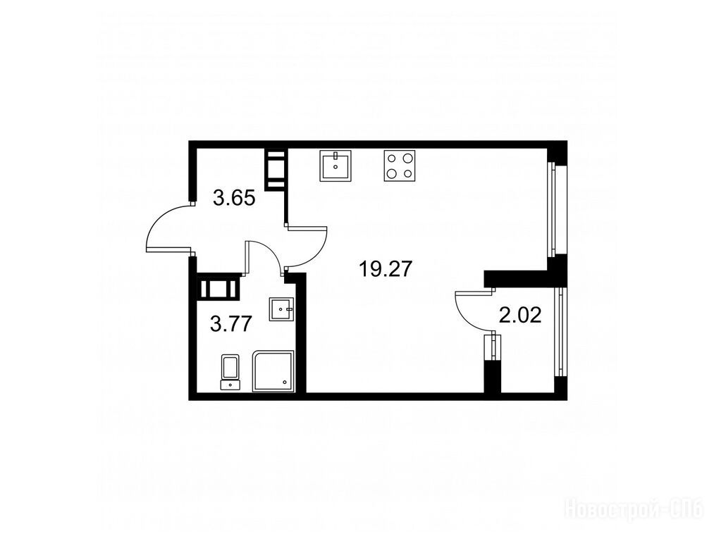студия, 27.70 м2, 6 этаж