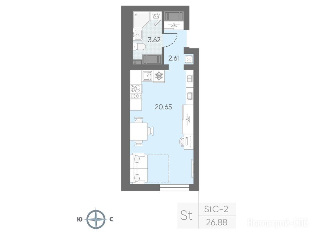 студия, 25.88 м2, 9 этаж
