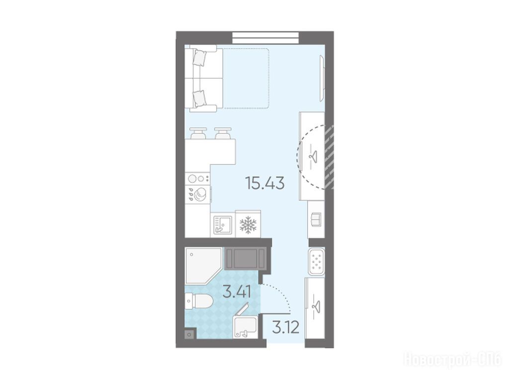 студия, 21.96 м2, 21 этаж