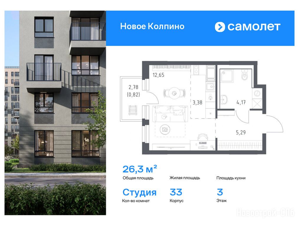 Продается студия в новостройке ЖК «Новое Колпино» по адресу Санкт-Петербург, Колпинский, Колпино, ЖК «Новое Колпино», корп. 33. Общая площадь квартиры - 26.31 кв. м. Тип проекта, по которому построен дом — Монолитно-кирпичный, компания-застройщик — ООО «СПб Реновация», Самолет. Стоимость квартиры — 5 243 715 руб. Способы оплаты можно уточнить у продавца. Срок сдачи — 1 квартал 2026. Более подробная информация по телефону.