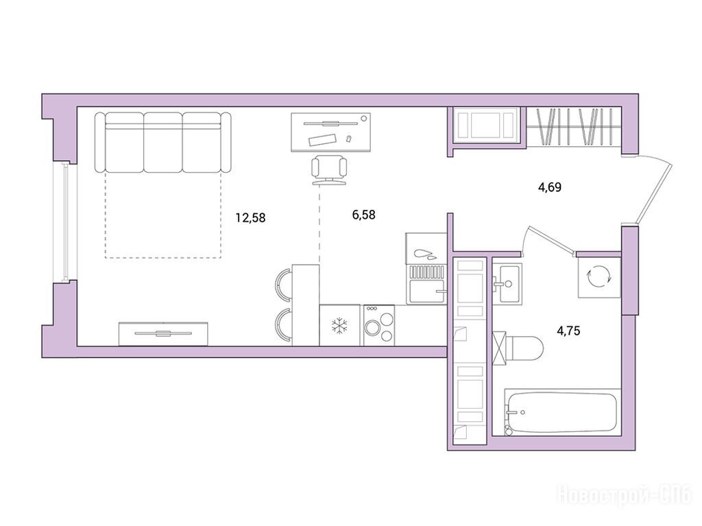 студия, 28.60 м2, 3 этаж