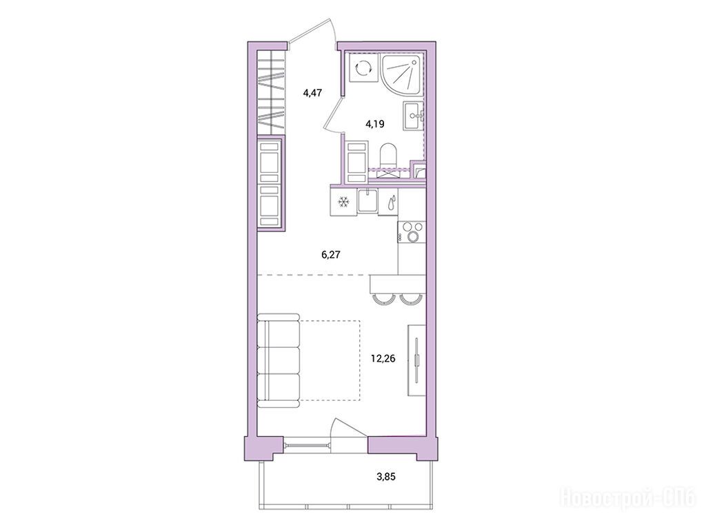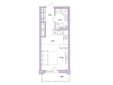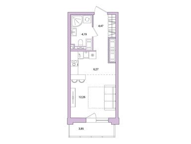 студия, 28.35 м2, 19 этаж