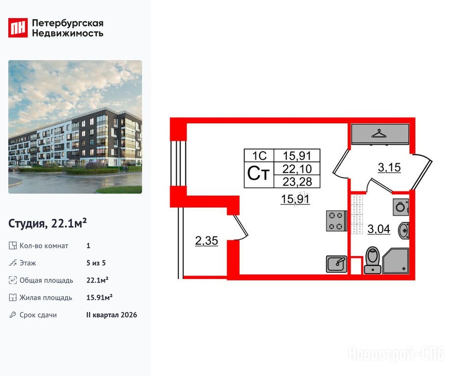 Продается студия в новостройке ЖК «Парадный ансамбль» по адресу Санкт-Петербург, Московский, Пулковское шоссе, участок 29, корпус 6.7. Общая площадь квартиры - 22.1 кв. м. Тип проекта, по которому построен дом — Монолитно-кирпичный, компания-застройщик — Setl Group (Сэтл Групп). Стоимость квартиры — 5 850 025 руб. Способы оплаты можно уточнить у продавца. Срок сдачи — 2 квартал 2026. Более подробная информация по телефону.