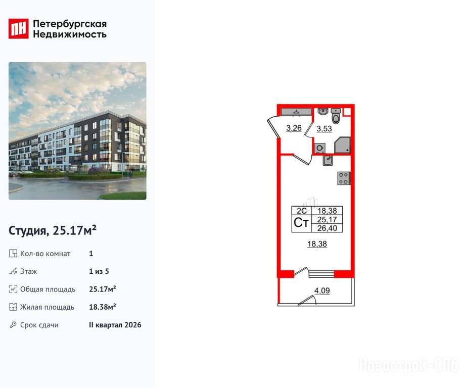 Продается студия в новостройке ЖК «Парадный ансамбль» по адресу Санкт-Петербург, Московский, Пулковское шоссе 103Х, корпус 7.13. Общая площадь квартиры - 25.17 кв. м. Тип проекта, по которому построен дом — Монолитно-кирпичный, компания-застройщик — Setl Group (Сэтл Групп). Стоимость квартиры — 5 800 049 руб. Способы оплаты можно уточнить у продавца. Срок сдачи — 4 квартал 2026. Более подробная информация по телефону.