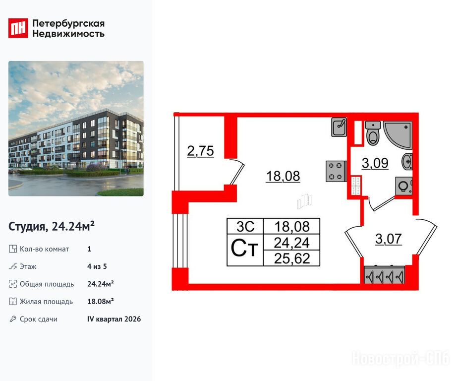 Продается студия в новостройке ЖК «Парадный ансамбль» по адресу Санкт-Петербург, Московский, Пулковское шоссе, участок 29, корпус 6.6. Общая площадь квартиры - 24.24 кв. м. Тип проекта, по которому построен дом — Монолитно-кирпичный, компания-застройщик — Setl Group (Сэтл Групп). Стоимость квартиры — 6 500 232 руб. Способы оплаты можно уточнить у продавца. Срок сдачи — 2 квартал 2026. Более подробная информация по телефону.