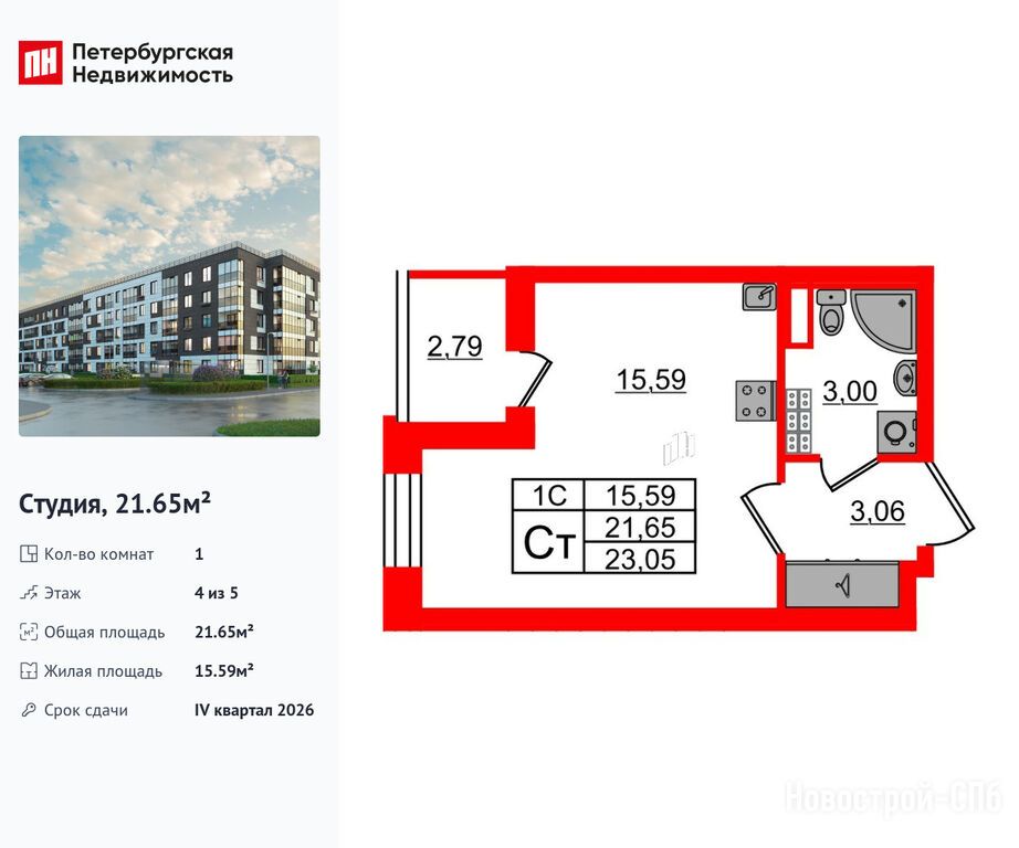 Продается студия в новостройке ЖК «Парадный ансамбль» по адресу Санкт-Петербург, Московский, Пулковское шоссе 103Х. Общая площадь квартиры - 21.65 кв. м. Тип проекта, по которому построен дом — Монолитно-кирпичный, компания-застройщик — Setl Group (Сэтл Групп). Стоимость квартиры — 5 200 178 руб. Способы оплаты можно уточнить у продавца. Срок сдачи — 1 квартал 2028. Более подробная информация по телефону.