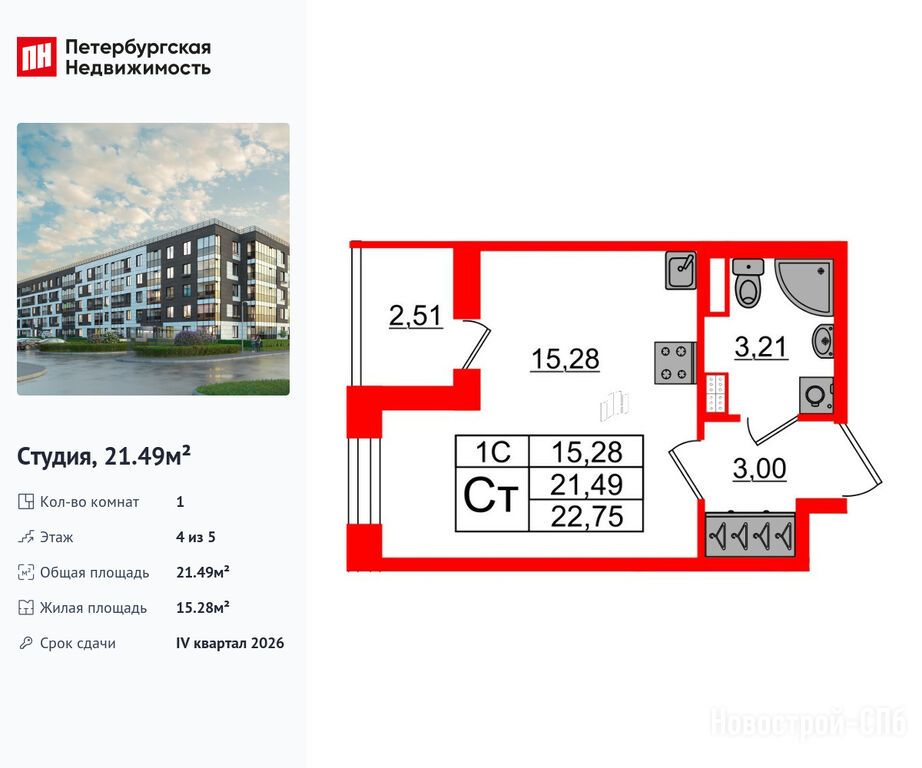 Продается студия в новостройке ЖК «Парадный ансамбль» по адресу Санкт-Петербург, Московский, Пулковское шоссе 103Х. Общая площадь квартиры - 21.49 кв. м. Тип проекта, по которому построен дом — Монолитно-кирпичный, компания-застройщик — Setl Group (Сэтл Групп). Стоимость квартиры — 5 400 125 руб. Способы оплаты можно уточнить у продавца. Срок сдачи — 1 квартал 2028. Более подробная информация по телефону.