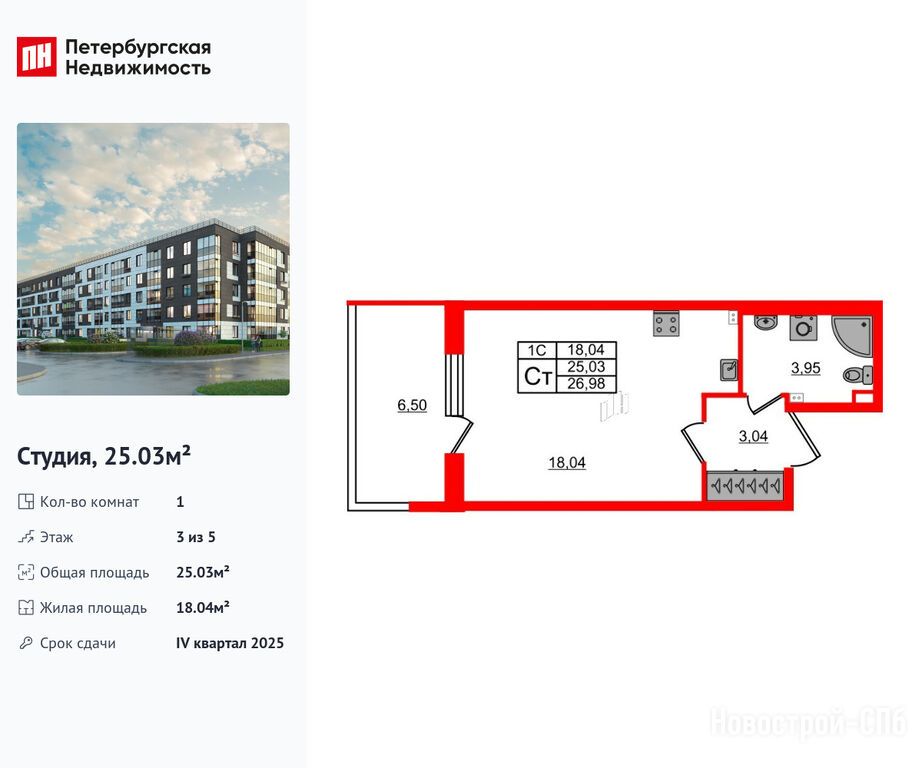 Продается студия в новостройке ЖК «Парадный ансамбль» по адресу Санкт-Петербург, Московский, Пулковское шоссе, участок 29, корпус 6.6. Общая площадь квартиры - 25.03 кв. м. Тип проекта, по которому построен дом — Монолитно-кирпичный, компания-застройщик — Setl Group (Сэтл Групп). Стоимость квартиры — 6 000 265 руб. Способы оплаты можно уточнить у продавца. Срок сдачи — 2 квартал 2026. Более подробная информация по телефону.