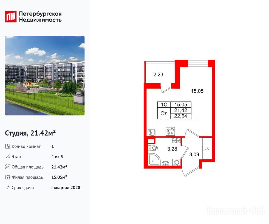 Продается студия в новостройке ЖК «Парадный ансамбль» по адресу Санкт-Петербург, Московский, Пулковское шоссе 103Х. Общая площадь квартиры - 21.42 кв. м. Тип проекта, по которому построен дом — Монолитно-кирпичный, компания-застройщик — Setl Group (Сэтл Групп). Стоимость квартиры — 5 400 014 руб. Способы оплаты можно уточнить у продавца. Срок сдачи — 1 квартал 2028. Более подробная информация по телефону.