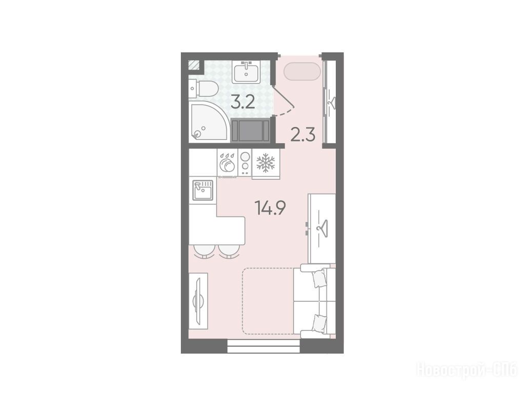 студия, 20.40 м2, 20 этаж
