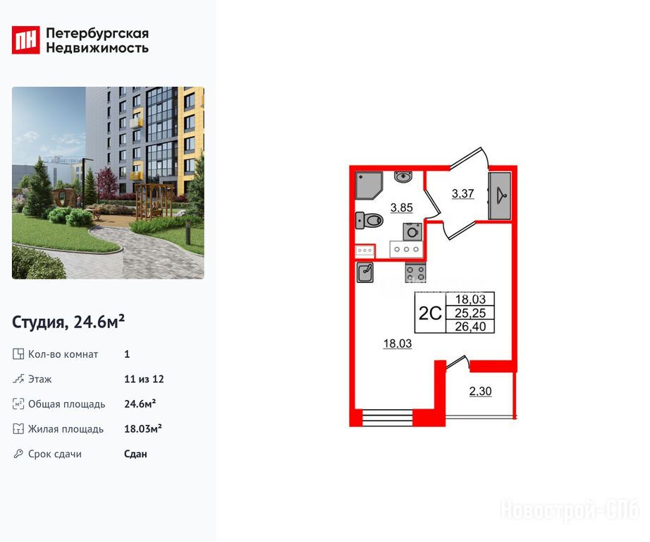 Продается студия в новостройке ЖК «Прайм Приморский» по адресу Санкт-Петербург, Приморский, Парашютная улица, 77к1. Общая площадь квартиры - 24.6 кв. м. Тип проекта, по которому построен дом — Монолитно-кирпичный, компания-застройщик — Setl Group (Сэтл Групп). Стоимость квартиры — 8 200 066 руб. Способы оплаты можно уточнить у продавца. Более подробная информация по телефону.