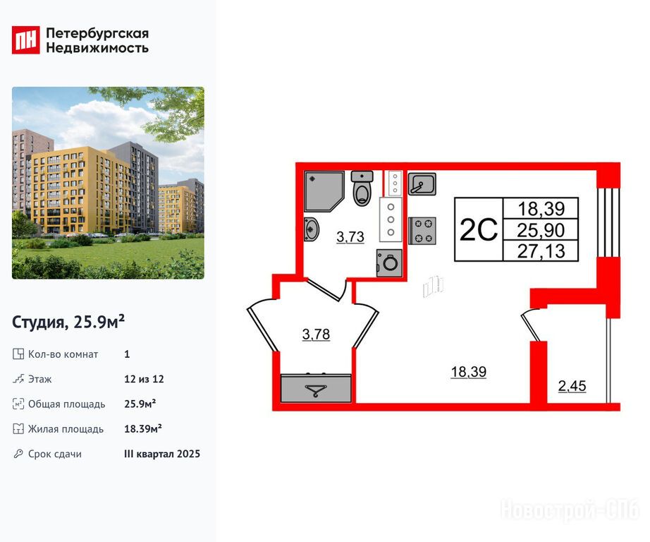 Продается студия в новостройке ЖК «Прайм Приморский» по адресу Санкт-Петербург, Приморский, Парашютная улица, 71к2. Общая площадь квартиры - 25.9 кв. м. Тип проекта, по которому построен дом — Монолитно-кирпичный, компания-застройщик — Setl Group (Сэтл Групп). Стоимость квартиры — 8 550 186 руб. Способы оплаты можно уточнить у продавца. Более подробная информация по телефону.