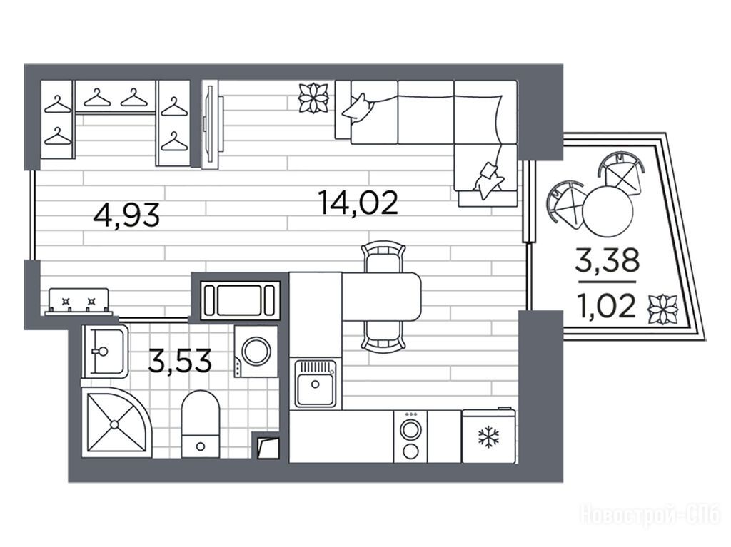 Забронировали трехкомнатную квартиру со светлой отделкой. Два сан узла, балкон, кухня-гостиная почти 19,м2. Понравилась идея с общественными террасами. Там посадят кустарники, обустроят лаунж-зоны, поставят столики, стулья. Можно будет и погулять и поработать