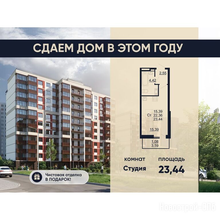 Продается студия в новостройке ЖК «Рубеж» по адресу Ленинградская область, Всеволожский район, Поселок им. Свердлова, Западный проезд, стр.уч. 12. Общая площадь квартиры - 23 кв. м. Тип проекта, по которому построен дом — Монолитно-кирпичный, компания-застройщик — ГК «Стоун», СЗ Альтернатива. Стоимость квартиры — 4 185 000 руб. Способы оплаты можно уточнить у продавца. Более подробная информация по телефону.