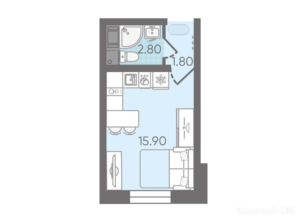студия, 20.60 м2, 12 этаж