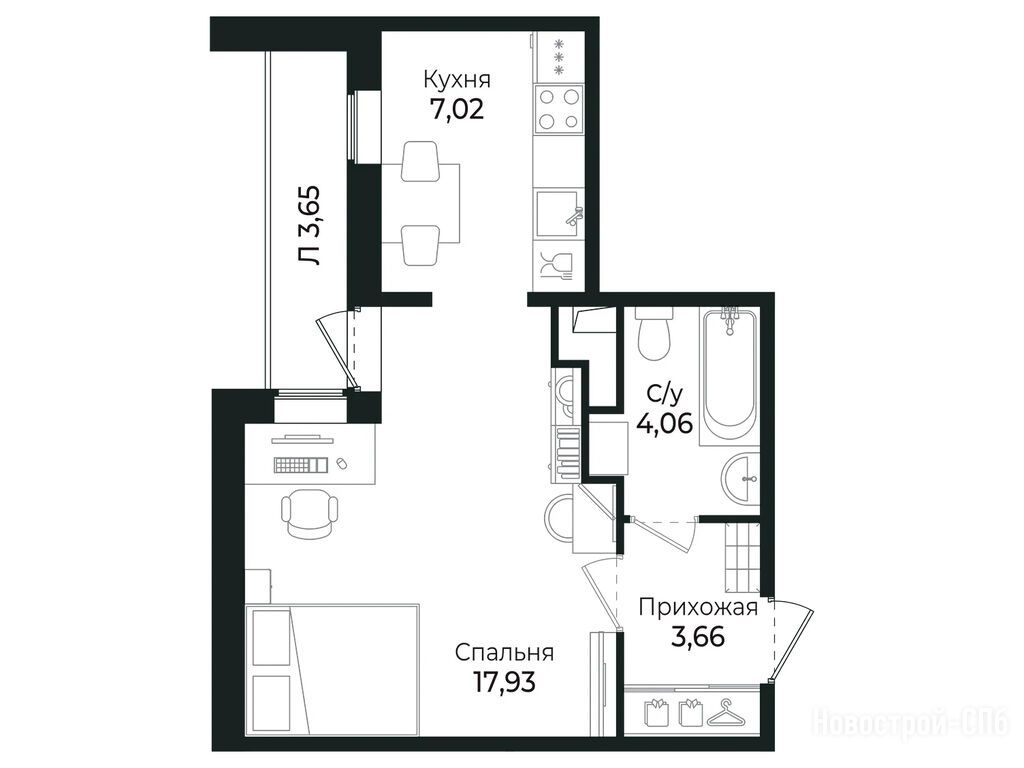1-комн. квартира 30,60 м2 6 672 085