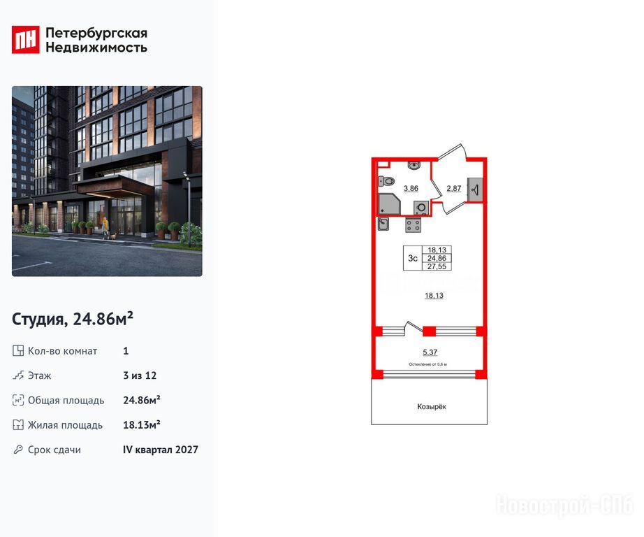 Продается студия в новостройке ЖК Setl Лофт по адресу Санкт-Петербург, Московский, ул. Георгия Чернышёва. Общая площадь квартиры - 24.86 кв. м. Тип проекта, по которому построен дом — Монолитно-кирпичный, компания-застройщик — Setl Group (Сэтл Групп), СЗ «Сэтл Московское шоссе». Стоимость квартиры — 8 700 055 руб. Способы оплаты можно уточнить у продавца. Срок сдачи — 4 квартал 2027. Более подробная информация по телефону.