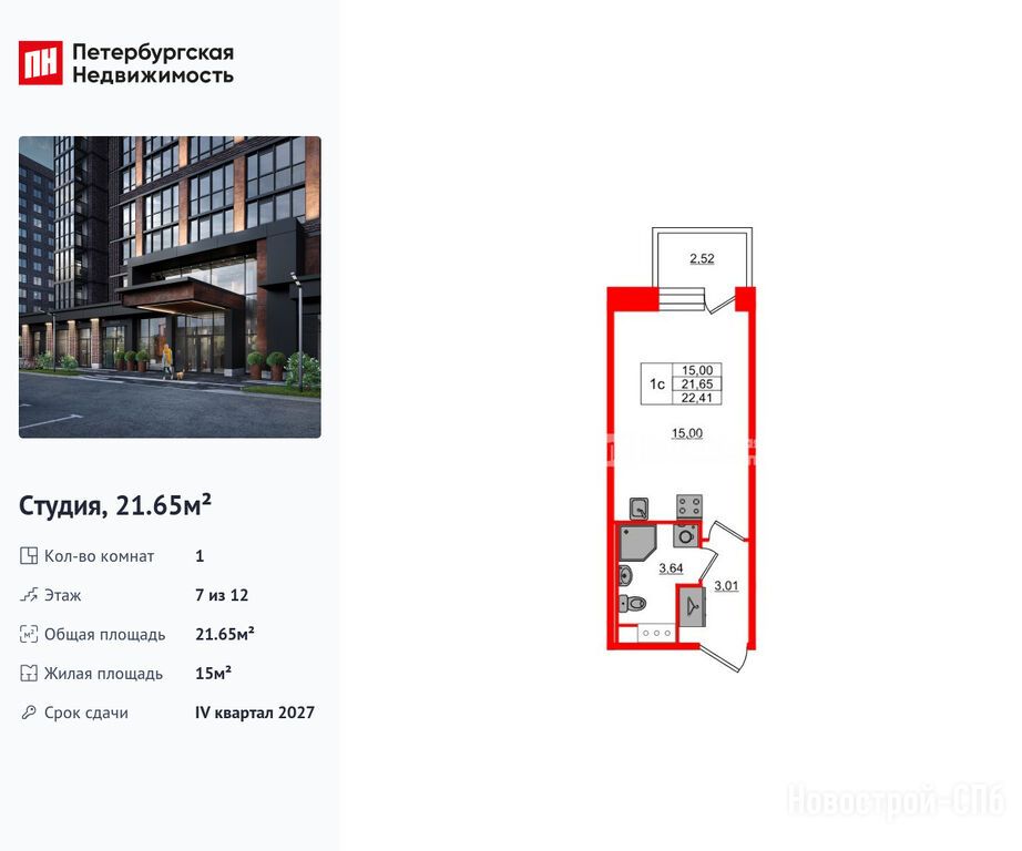 Продается студия в новостройке ЖК Setl Лофт по адресу Санкт-Петербург, Московский, ул. Георгия Чернышёва. Общая площадь квартиры - 21.65 кв. м. Тип проекта, по которому построен дом — Монолитно-кирпичный, компания-застройщик — Setl Group (Сэтл Групп), СЗ «Сэтл Московское шоссе». Стоимость квартиры — 8 450 060 руб. Способы оплаты можно уточнить у продавца. Срок сдачи — 4 квартал 2027. Более подробная информация по телефону.