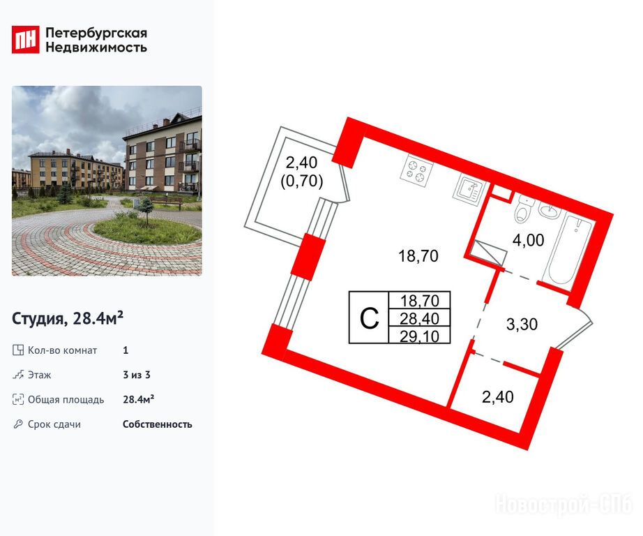 Продается студия в новостройке ЖК «Шотландия» по адресу Ленинградская область, Всеволожский район, Агалатовское, Скотное дер., Вересковая ул., 5к2. Общая площадь квартиры - 28.4 кв. м. Тип проекта, по которому построен дом — Монолитно-кирпичный, компания-застройщик — Фонд защиты участников долевого строительства ЛО, ООО «Строительная компания «НАВИС». Стоимость квартиры — 3 371 080 руб. Способы оплаты можно уточнить у продавца. Более подробная информация по телефону.