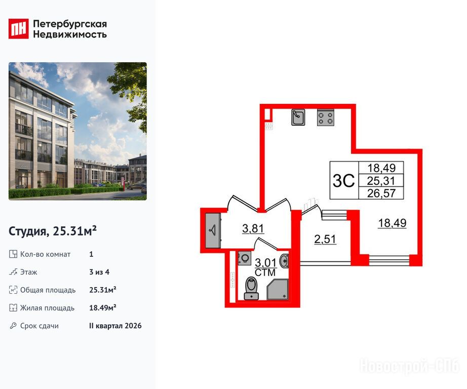 Продается студия в новостройке ЖК «Дворцовый фасад» по адресу Санкт-Петербург, Петродворцовый, Стрельна пос., пр-т. Буденного, уч. 16. Общая площадь квартиры - 25.31 кв. м. Тип проекта, по которому построен дом — Монолитно-кирпичный, компания-застройщик — Setl Group (Сэтл Групп). Стоимость квартиры — 7 600 289 руб. Способы оплаты можно уточнить у продавца. Срок сдачи — 2 квартал 2026. Более подробная информация по телефону.