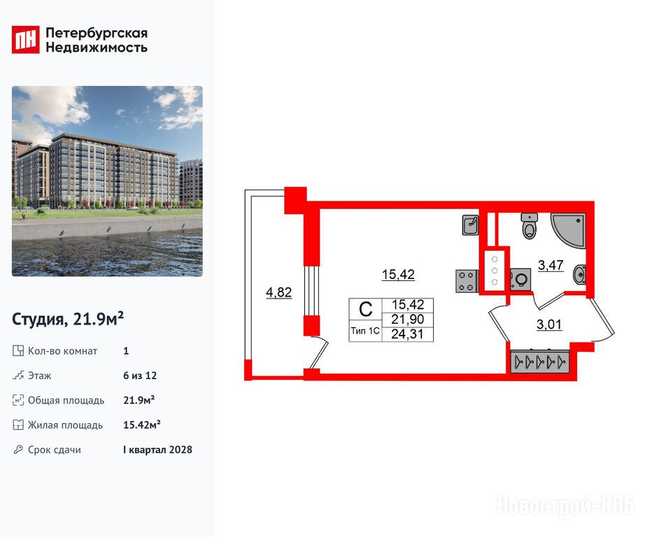 Продается студия в новостройке ЖК «Сэтл Ривьера» по адресу Санкт-Петербург, Невский, Октябрьская набережная (корп. 1.1). Общая площадь квартиры - 21.9 кв. м. Тип проекта, по которому построен дом — Монолитно-кирпичный, компания-застройщик — ООО «СЗ ПОТЕНЦИАЛ», Setl Group (Сэтл Групп). Стоимость квартиры — 9 650 016 руб. Способы оплаты можно уточнить у продавца. Срок сдачи — 1 квартал 2028. Более подробная информация по телефону.