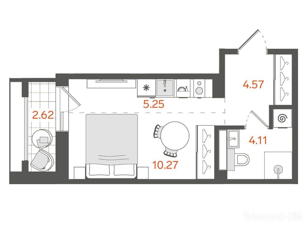 студия, 24.20 м2, 2 этаж