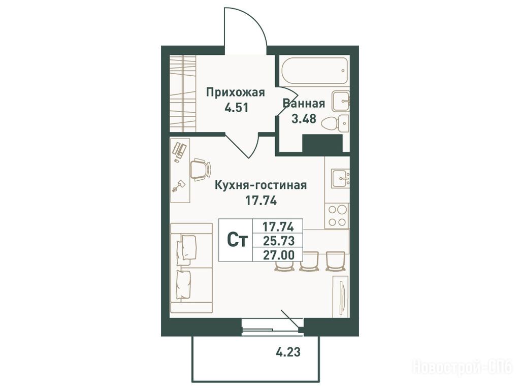 Планировка квартиры – это отдельная история, всё очень эргономично. А инфраструктура ЖК, включающая спортивные объекты и зоны отдыха, просто на высоте
