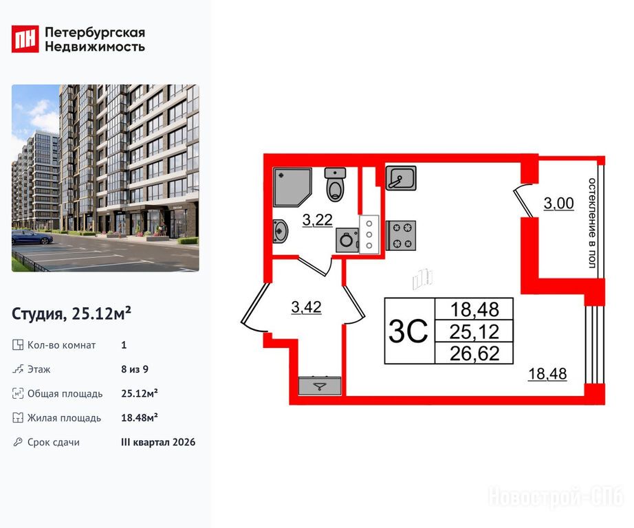 Продается студия в новостройке ЖК «Титул в Московском» по адресу Санкт-Петербург, Московский, ул. Кубинская, ЖК «Титул в Московском», корпус 2. Общая площадь квартиры - 25.12 кв. м. Тип проекта, по которому построен дом — Монолитно-кирпичный, компания-застройщик — Setl Group (Сэтл Групп), ООО «Новый элемент». Стоимость квартиры — 8 750 050 руб. Способы оплаты можно уточнить у продавца. Срок сдачи — 4 квартал 2028. Более подробная информация по телефону.